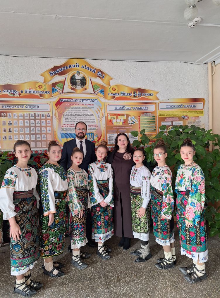 „Consacrat jubileului instituției de învățământ, evenimentul a fost sărbătorit cum se cuvine unei școli din Ucraina aflată în război de apărare – cu Imnul de stat al Ucrainei, cu minutul de reculegere pentru apărătorii țării căzuți la datorie, cu persoane oficiale din învățământ și conducerea raionului Cernăuți. Patria noastră istorică, România, care a finanțat proiectul din acest an și unul în 2023 de înzestrare a Muzeului proaspăt revigorat, ambele implementate de Societatea „Doamnele Române”, a fost reprezentată de doamna Consul General la Cernăuți, Irina Loredana Stănculescu, și consulul Cristian Dacica. De asemenea, drept răspuns la invitația directoarei Liceului, Angela Botă, și a președintei Societății „Doamnele Române”, un călduros cuvânt de salut a adresat online doamna Secretar de Stat, directorul DRP, Cristina-Lavinia Arnăutu. Înaltul demnitar și-a exprimat regretul că n-a avut posibilitatea să fie prezent în mijlocul copiilor care și-au etalat talentele, unii dintre ei fiindu-i cunoscuți din perioada vacanței de vară petrecute în taberele ARC. Din partea invitaților a felicitat și a lăudat colectivul pedagogic Corina Pop, adjunct al șefului Administrației Militare a raionului Cernăuți, primarul comunei Aurel Babii, Tamara Bogaciuk, directoarea Institutului Postuniversitar de Perfecționare a Cadrelor Didactice, Lilia Govornean, metodist și formator la respectiva instituție, care, în calitate pe președintă a ACDER, a vorbit și despre realizările proiectelor sale, în special Harta Culturală a Românilor din nordul Bucovinei. A urmat un schimb de diplome de onoare, de merit și gratitudine, directoarea Angela Botă, având onoarea să le înmâneze doamnei Secretar de Stat Cristina-Lavinia Arnăutu (virtual) și Consulului General Irina Loredana Stănculescu. De diplome s-au învrednicit profesoarele entuziaste Cristina Nelici și Sofia Jalbă, astfel fiindu-le apreciate meritele la inaugurarea muzeului.