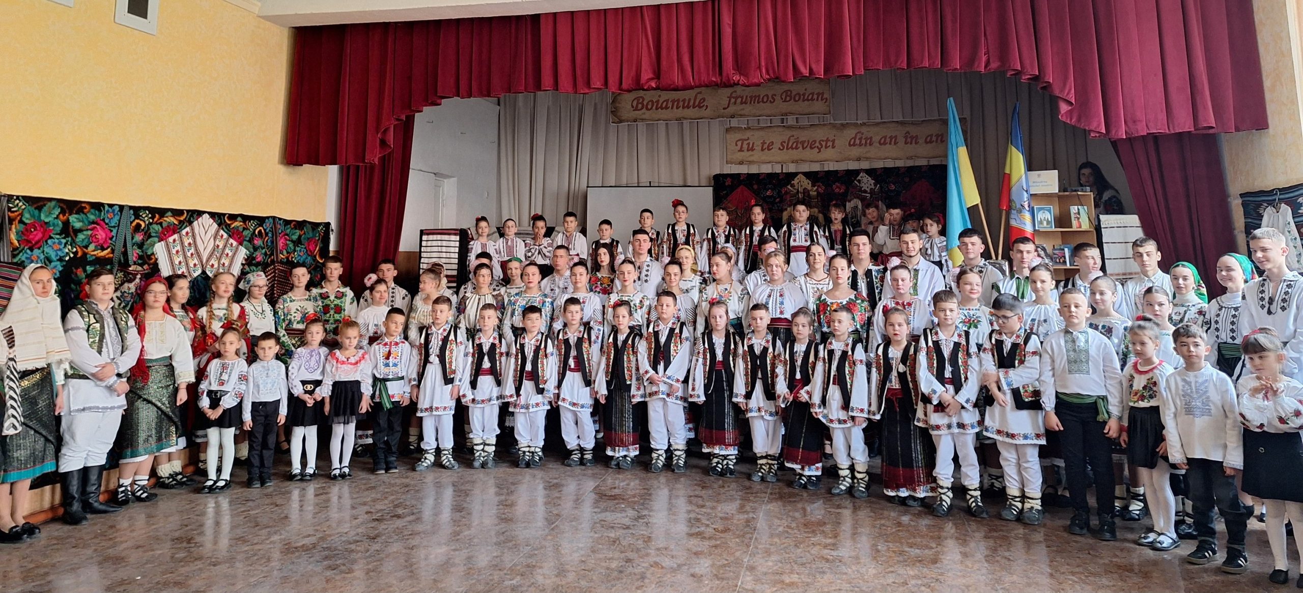 Fața românească a Boianului s-a oglindit în anturajul de la intrare și până la sala de festivități a școlii, fiind conturată de copii, eroii principali ai sărbătorii – în culorile portului popular, în cântece, dansuri, povestea lăzii cu zestre, în zborul alb al hulubașilor păcii. Ei, cei care dau suflet dansurilor „Mioriței”, care dau voce cântecelor românești – Pavel Cornuța, surorile Sofia și Anastasia Poclitar, Alexei Dârda, micul cu glas mare Petru Juc, învățătoarea Maria Botă, au făcut să bată românește inima Boianului. Neîndoielnic, la mersul armonios al spectacolului moderat de Marinica Iurcu și Nichita Nelici, la îmbrăcarea sălii în veșminte de poveste au pus mâna și umărul tot colectivul pedagogic, părinții copiilor, simțindu-se și duhul celor care au fost până la noi. Or, ei au zidit temelia rezistenței la cutremurele timpurilor, făcând mai suportabil traiul de astăzi sub vremuri. Și a mai stat ceva, ba aș putea numi cineva însuflețit, la masa sărbătorii. Am în vedere Măria Sa tradiția, despre care a vorbit părintele Vasile, parohul Bisericii „Adormirea Maicii Domnului”. Tradiția ține de Muzeu, dar asta e și povestea mea, despre care a pomenit radiojurnalista Carolina Jitaru, vicepreședintă a Societății „Doamnele Române”, e și a Silvicăi Leah, care a donat sute de scumpe exponate, adevărate relicve, pentru muzeu”.