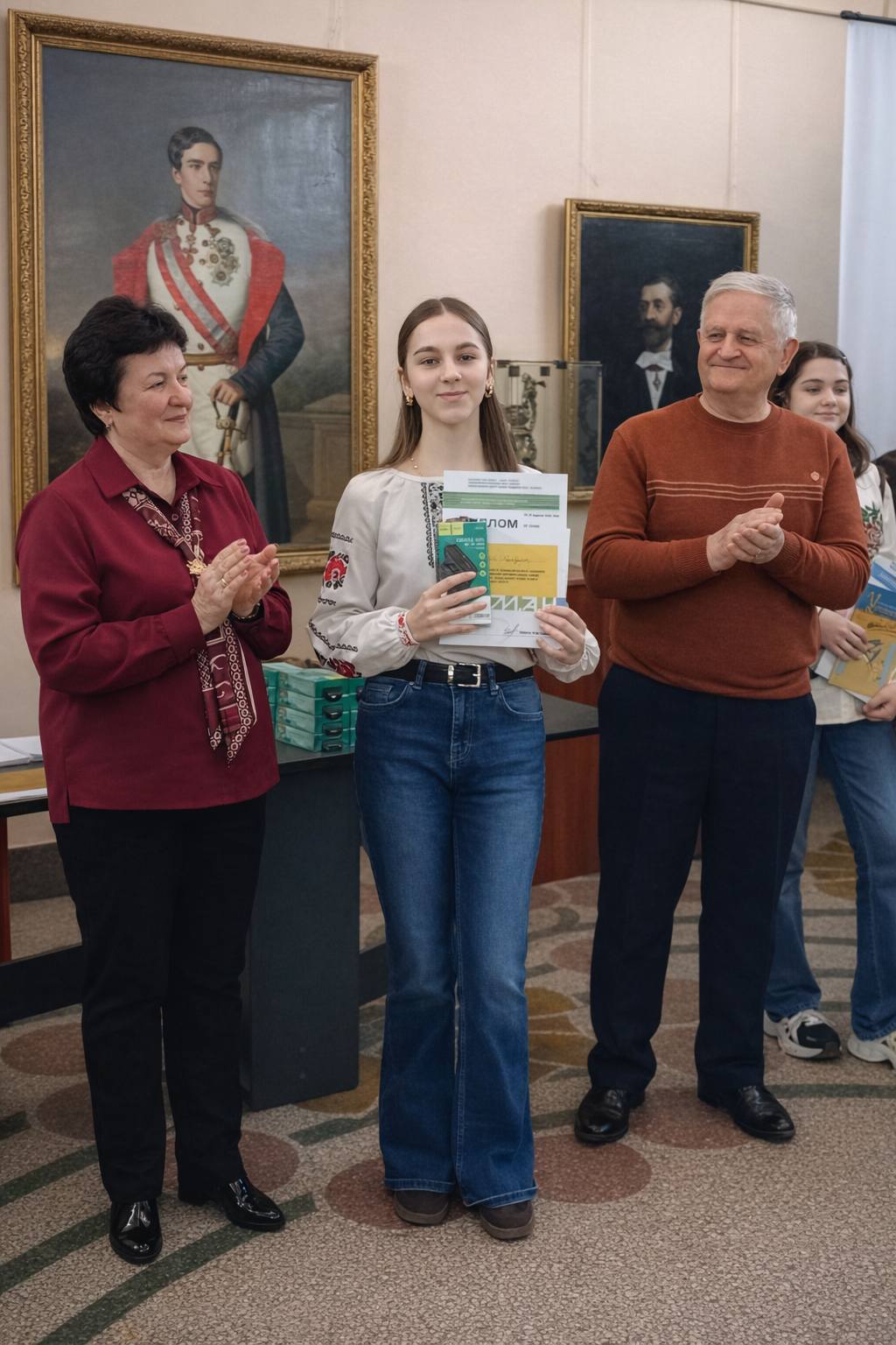 În cele din urmă, constatăm cu plăcere că, și bucovinenii noștri se numără anul acesta printre cei mai buni ghizi școlari din Ucraina, ei reușind să obțină două locuri premiante. Una dintre performanțe îi aparține Vasilisei Țâbuleac, de la Liceul din Oprișeni. Elevă în clasa a opta, fata, beneficiind de îndrumarea directorului instituției, Nicolae Bodnariuc, a cucerit poziția a treia la secțiunea „Muzee ale istoriei educației sau ale unei instituții de învățământ”.